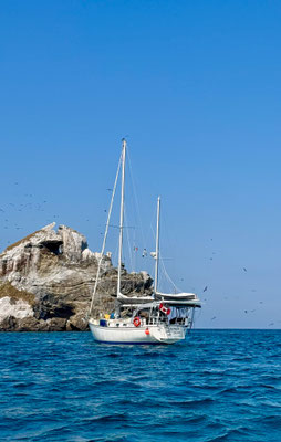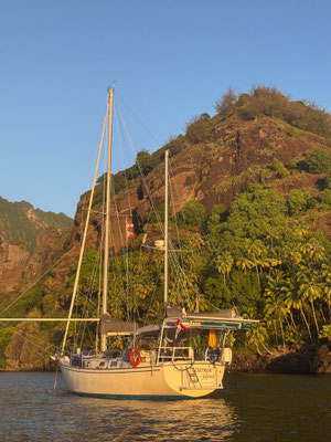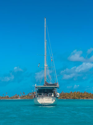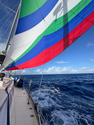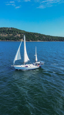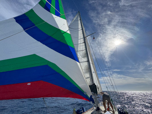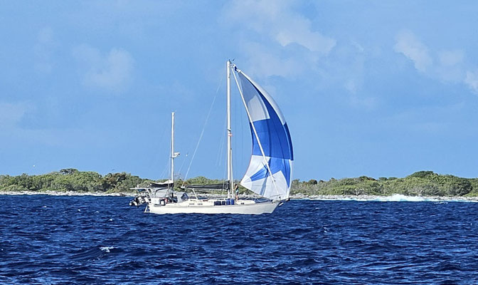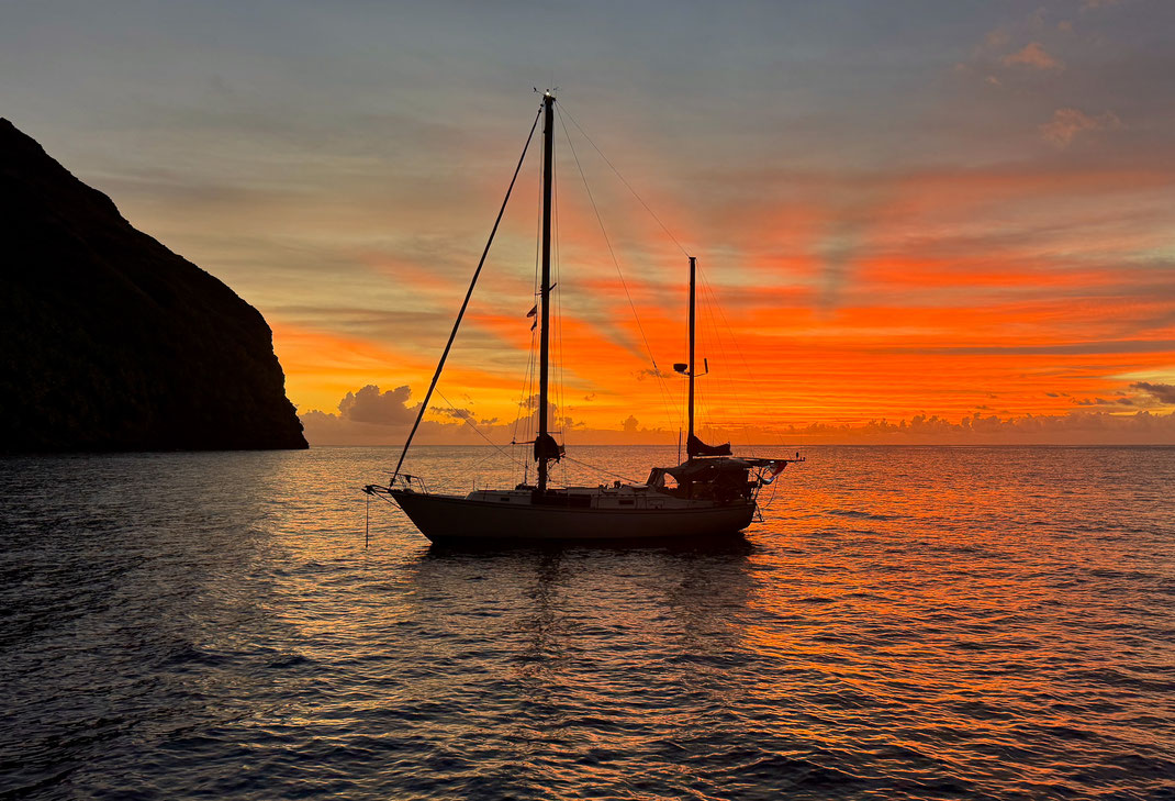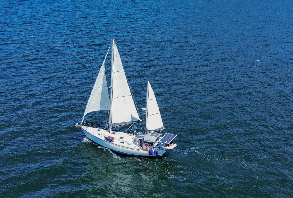 Ketch-rig makes for lighter loads and easier sail management. Stack-packs make hoisting and dropping sails simple.