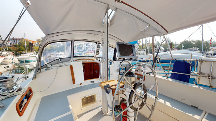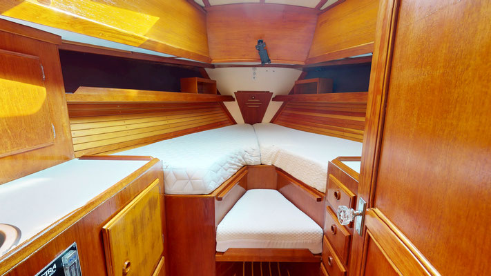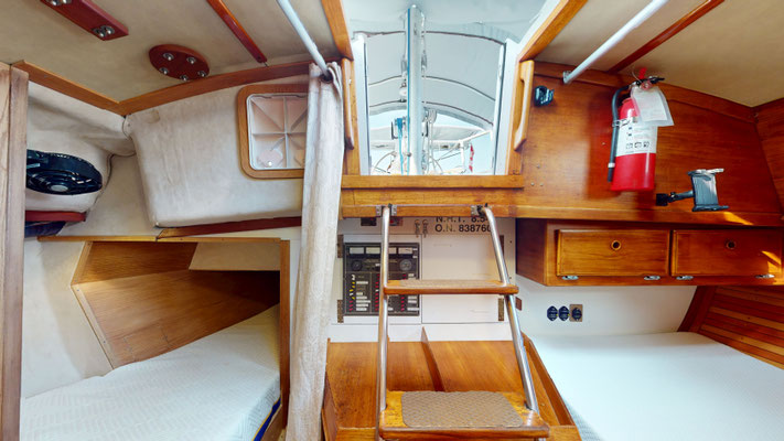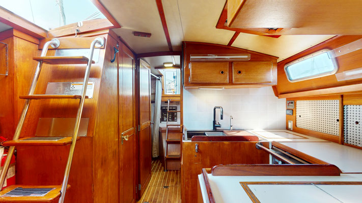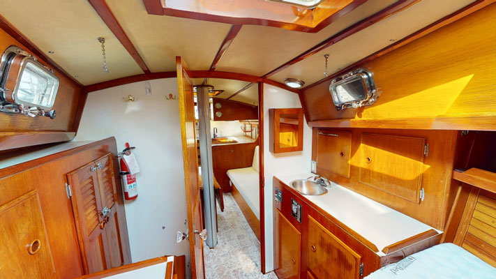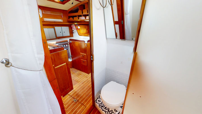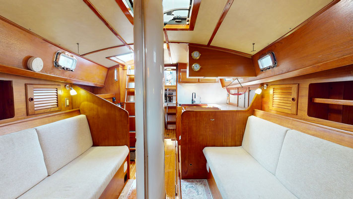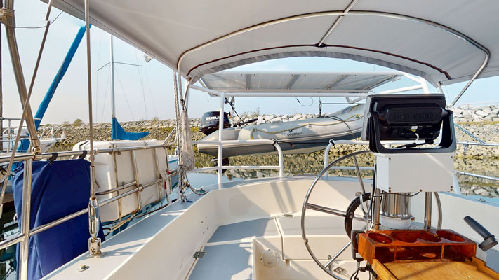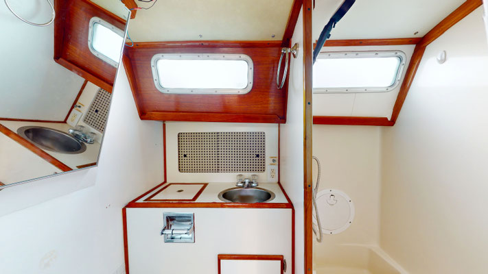 Ample storage inside and out. Huge cockpit lockers for toys and sails and massive amounts of interior storage throughout.
