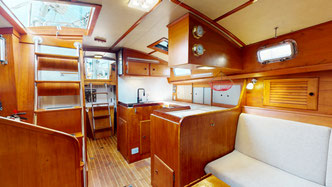 Solid built medium displacement hull design makes for a stable and comfortable boat at sea and at anchor.